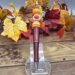 Orange Plaid Pumpkin Beaded Pen with Charm